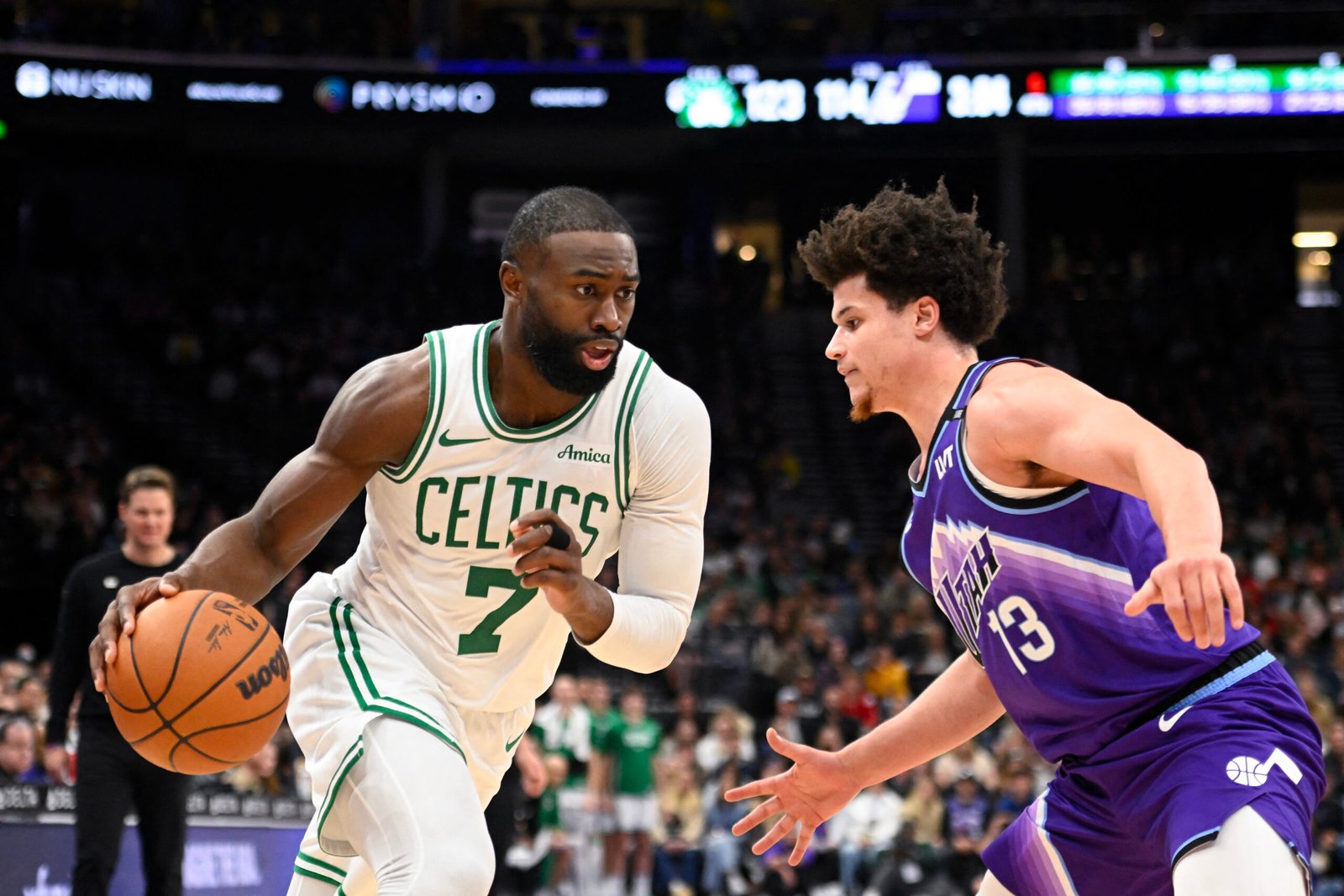Los Boston Celtics cierran el mes de diciembre con una racha de nueve triunfos, cinco en condición de visitante, y tres derrotas al imponerse 129-119 sobre el Utah Jazz en el Delta Center (Salt Lake City).