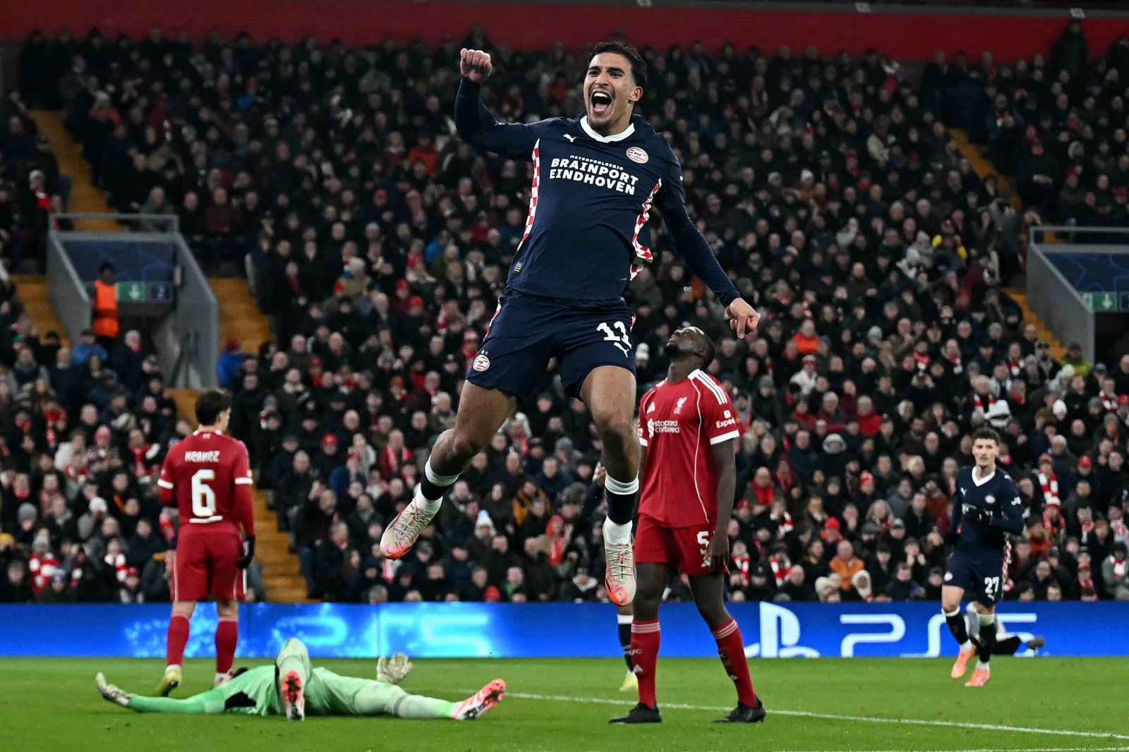 El Liverpool, en una crisis cada vez más profunda, pagó cara su fragilidad defensiva y el PSV Eindhoven se llevó la victoria por 4-1 en Anfield, este miércoles en la quinta jornada de la Liga de Campeones de Europa.