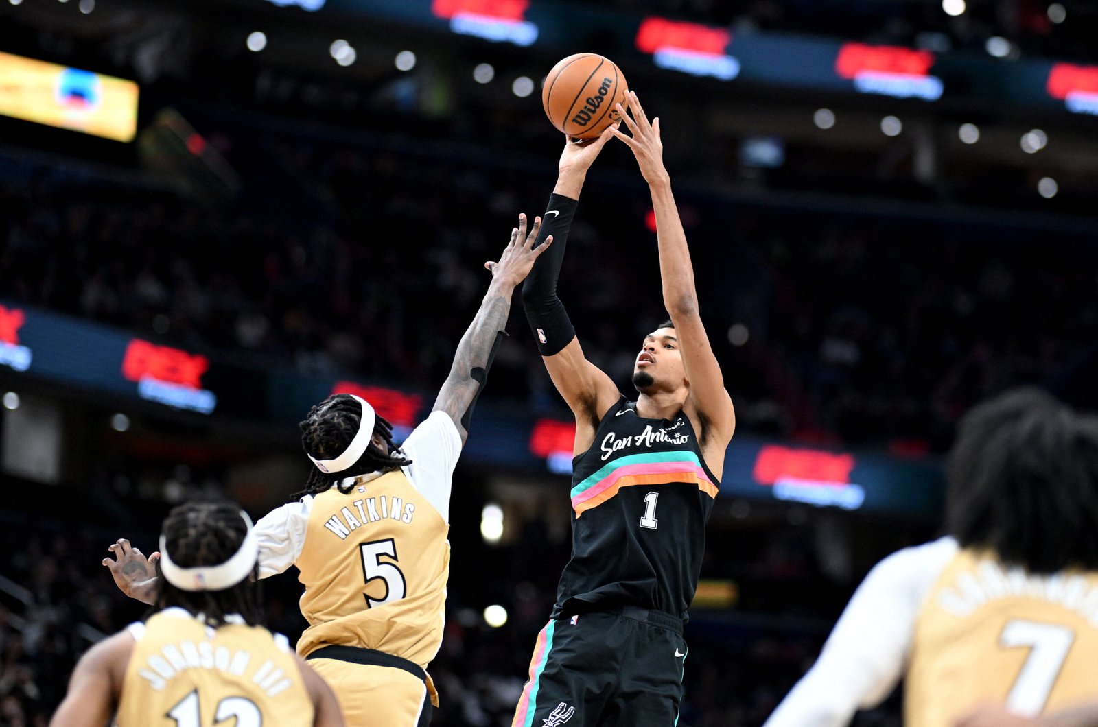 San Antonio tuvo siete jugadores que anotaron más de 10 puntos, entre ellos el prodigio francés Victor Wembanyama que aportó 14 unidades en 21 minutos en cancha, saliendo desde la banca.